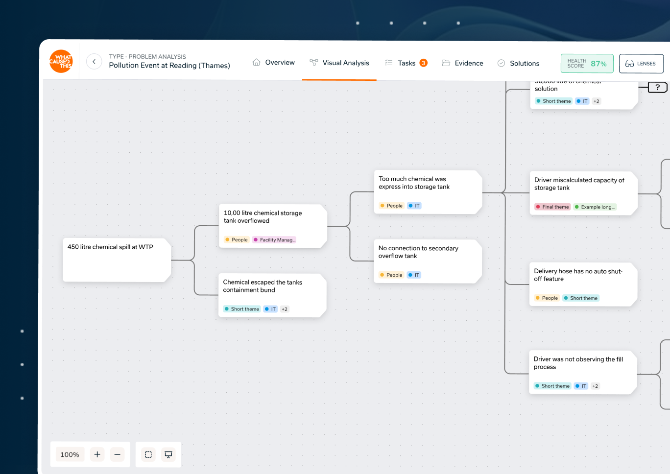 Where legacy tools treated data capture and analysis on a per-case basis, What Caused This brought them together. Our strategy fused data ingestion, contextual AI, and decision-making support into a visual problem statement. The result: faster, more accurate insights that scale human intelligence without replacing it. This integration helped organisations not just meet regulatory expectations—but exceed them, transforming incident analysis from a checkbox exercise into a strategic advantage.